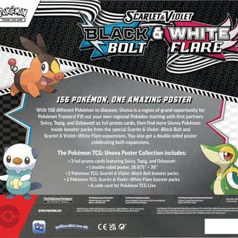 Dyk ned i Unova-regionen med denne flotte samleboks, som fejrer Pokémon fra både Black Bolt og White Flare-serierne. Med eksklusive foil-kort og en stor dobbeltsidet plakat får du både samleglæde og sjældne kort til din samling.