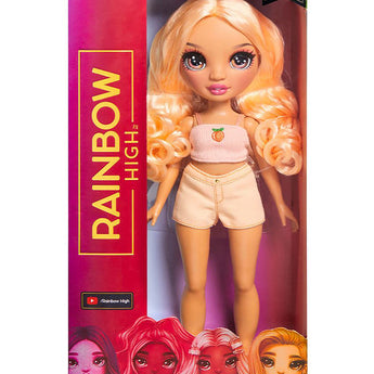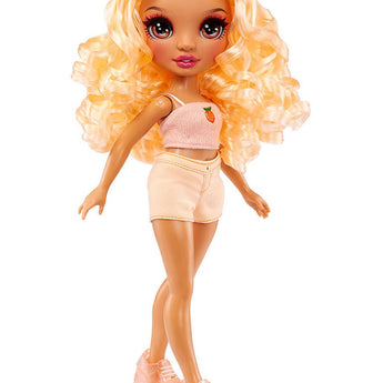 Mød smukke Georgia Bloom – en stilfuld Rainbow High modedukke klædt i elegante nuancer af fersken fra top til tå. Hun er ikke en gennemsnitlig dukke: Georgia elsker scenekunst og bringer et strejf af sydstatscharme og glimmer til teateret!