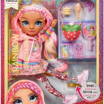 Gør dig klar til at funkle! Med Rosetta fra Rainbow High Sparkle & Shine-serien får børn en magisk legeoplevelse, hvor dukken glitrer, når man ryster hende. De væskefyldte ben er fyldt med flydende glitter, som bevæger sig ved hvert lille ryk – og bringer ekstra magi til legen.